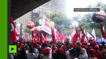 Des centaines de Brésiliens ont manifesté dans les rues contre la corruption, mercredi 16 novembre. Images. Durée: 00:26.