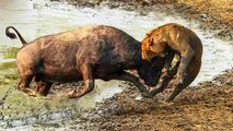 Battle Goes Into The History Of Lion Buffalo Throws Lion Into The Air To Escape Lion, Buffalo
