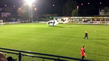 Atterrissage d'un hélicoptère sur un terrain de foot