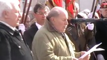 Vesoul a célébré le 50e anniversaire du Cessez-le-feu de la guerre d'Algérie, lundi 19 mars 2012 à 15h précises, au nouveau cimetière de la ville, en présence des personnalités civiles et militaires, des porte-drapeaux, des musiciens Gilles Jeannot et Jean-Louis Sebille, et de la population. Après la sonnerie du cessez-le-feu aux quatre points cardinaux, l'ode au Mémorial du père Pierre Taillan, adhérent à la FNACA du Tarn, a été partagée avec l'assistance par la voix de Robert Olivier (notre vidéo), président du comité local de la FNACA de Saint-Bresson. Lecture a été faite du message de la FNACA par Marcel Birquy, président de la FNACA de Haute-Saône. Guy Rouillon, membre responsable de la FNACA 70, a procédé à l'appel des 134 militaires haut-saônois "morts pour la plupart à 20 anssous les plis du drapeau français en Afrique du Nord entre 1952 et 1962".