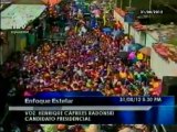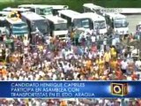 13/06/2012 - El Candidato de la Unidad Democrática a la Presidencia de la República, Henrique Capriles Radonski, visitó este miércoles la ciudad de Cagua como parte de su gira nacional titulada "El Huracán del Progreso". Capriles durante su presentación en tarima habló sobre los problemas que tiene Cagua y Aragua en general como la inseguridad y el abandono de las zonas industriales. También se refirió al fracaso que es Agropatria en la capital del municipio Sucre en el estado.