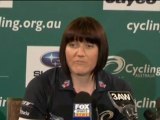 Victoria Pendleton has responded to a journalist asking her whether Aussie rival Anna Meares is "a cow", by saying "definitely not". Report by Fosterso. Like us on Facebook at http://www.facebook.com/itn and follow us on Twitter at http://twitter.com/itn