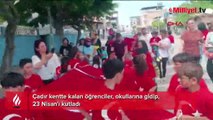Çadır kentte 23 Nisan çoşkusu! Çocuklar, okullarına gidip, kutlama yaptı