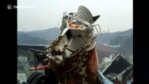 Civil defence volunteers and locals used makeshift stretchers made out of limbs to get people across a river so they could be transported to a hospital.