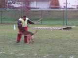 Cisco au saut de la palissade au concours en ring français de St Julien de Concelles le 24.11.2012. Hauteur 2.10m Cisco de la Haute Morinière, malinois mâle de 5 ans.