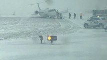 Security camera footage shows a small plane that slipped off the runway and crashed into a fence at Sao Paulo's Congohas airport on Tuesday. The three people flying aboard the Cessna Citation CJ3 plane from Florianopolis were injured but are no longer in life-threatening conditions. The pilot Michael Rumpf Gaail received the worst injuries.