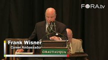 Frank Wisner discusses the future challenges of American foreign policy in the Middle East with regards to conflicts in Israel and Palestine, Iran, and Iraq as a part of a morning lecture series called American Foreign Policy: Leadership and Dialogue.