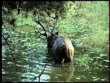 Sambhar deer in Milak Talao at Ranthambore National Park