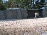Notre nouvelle arrivante, une femelle zèbre de 7 ans et demi (dans le champ) va rencontrer pour la première fois une des pensionnaires actuelles, une autre femelle d'un an et demi (derrière la barrière) sous l'oeil attentif de leur soigneuse, Erell. La rencontre se passe bien, et la petite va très vite coller de près la nouvelle...