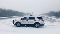 THis dash cam catches a driver who swings to wide on a snowy road and hits a car, but the driver keeps going and drives off.