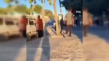 Sokak ortasında eşine yumruk atan maganda kamerada