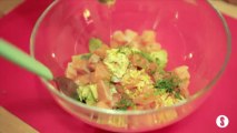 Un plato fresquito y potente. La grasa del aguacate y el salmón combinan a la perfección. El único ingrediente que nos llevará más tiempo preparar es el aceite picante, que tendremos que tener en la despensa. Básicamente se mezcla el aceite de oliva con lo que más rabia nos dé. En nuestro caso se trata de guindillas, ajos y laurel. Hay que dejarlo un mínimo de 5 días para que empiece a coger solera.
