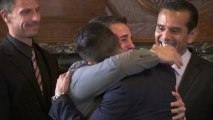 Same-sex couples rush to get married after the Supreme Court lifts a ban on gay marriage in California. Report by Johnstons. Like us on Facebook at http://www.facebook.com/itn and follow us on Twitter at http://twitter.com/itn