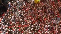 Las miles de personas que se habían congregado frente al Ayuntamiento de Pamplona para ver el chupinazo, tuvieron que esperar 18 minutos más de lo previsto para poder disfrutar de las fiestas más internacionales de España.