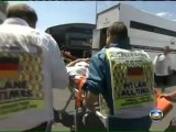 Reparti semble-t-il avant que tous ses pneus n'aient été fixés, Mark Webber ne peut éviter l'incident de course lors de son arrêt au stand. Il ne faut pas longtemps à l'Australien pour voir ses chances de podium s'envoler (il est parti en troisième position). Sa roue arrière mal serrée se détache quelques instants après qu'il ait redécollé. Alors que le team Lotus a le temps d'éviter le projectile, la roue volante du pilote Red Bull vient heurter de plein fouet un caméraman alors de dos à ce moment là. La scène est impressionnante, comme en témoignent cette vidéo ! L'équipe médicale sur place a pris en charge le malheureux, aucune information sur son état de santé n'a été divulguée pour le moment. Mark Webber quant à lui pointe actuellement à la 8e place, à 10 tours de l'arrivée.