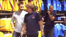 'TATA' MARTINO POSA ANTE EL ESCUDO DEL BARÇA.