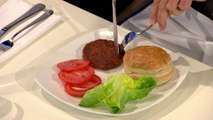 Il pesait 142 grammes et a coûté 250.000 euros : le premier burger créé "in vitro" à partir de cellules souches de vache a été cuisiné et dégusté lundi 5 août à Londres lors de la mise en scène d'une expérience potentiellement révolutionnaire.Durée: 00:55