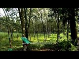 Rubber plantation in Arunachal Pradesh - man taps rubber