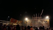 Basècles - 32e carnaval. Les groupes se réunissent sur la place avant le feu d'artifice. 19/02/2012