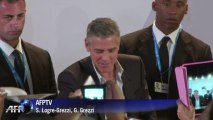 Reminiscent of his 2009 Venice appearance when a male reporter professed his love for Clooney and had to be escorted from the news conference, Clooney appeared to be mildly irritated as another male reporter started complimenting the star on his hair, suit and sex appeal to women.