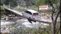 ARTVİN Asma köprüden araçları ile geçiyorlar
