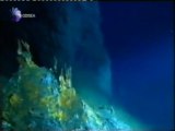 El agua que fluye de las fuentes hidrotermales del fondo océanico consiste sobre todo en agua de mar conducida dentro del sistema hidrotérmico cerca un volcán a través de fallas y de sedimentos porosos ó estratos volcánicos, más un poco de agua magmática lanzada por la ascensión del magma. El agua emerge de una fuente hidrotermal a temperaturas que se extienden hasta los 400 °C, comparado con los 2 °C del agua oceánica circundante. La alta presión a estas profundidades amplía perceptiblemente la distancia en la cual el agua sigue siendo líquida, evitando así que esta hierva. El agua a una profundidad de 3.000 m y una temperatura de 407 °C es supercrítica. Sin embargo el aumento en salinidad empuja el agua a su punto crítico. Algunas fuentes hidrotermales forman chimeneas casi cilíndricas. Éstos se forman de los minerales que están disueltos en el fluido que emite.