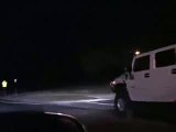 Crazy Hummer driver driving over the road signs and breaks them one by one