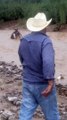 Hombres lazan a un sujeto que era arrastrado por un río para poder salvarlo