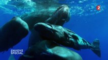 Grâce à des capteurs, des biologistes marins ont pu suivre deux cachalots pendant 24 heures, jusqu'à 1 700 mètres de profondeur. Ce dispositif permet d'ouvrir un nouveau chapitre de la recherche et de mieux appréhender comment, grâce aux sons, ces cétacés détectent leurs proies dans l'obscurité des abysses. Les scientifiques espèrent ainsi pouvoir décoder les fameux "clics" si caractéristiques de leur langage...