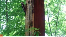 Très mauvaise surprise pour ce pic-vert... Pauvre oiseau!