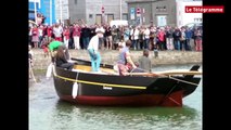 Il fallait attendre un fort coefficient de marée pour mettre à l'eau Skellig, ce langoustier en chêne de 15 m de long et 5m de large, construit à l'ancienne par une équipe de passionnés de Douarnenez (29), à qui dix années de travail auront été nécessaires pour réaliser l'ouvrage. Lundi était le jour idéal pour ce baptême. Mer calme, soleil radieux, chants de marins, sardines grillées... Vers 18h, Skellig a glissé dans l'eau salée du vieux port de Douarnenez sous les applaudissements de quelque 2.000 personnes. Le reportage de Tébéo