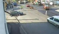 Toro ataca a un policía de tránsito de Rumania / Bull attacks a Romanian traffic police