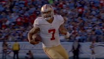 San Francisco 49ers quarterback Colin Kaepernick runs it from 9 yards out for his second rushing touchdown of the game to help give the 49ers a 28-0 lead over the Jacksonville Jaguars.