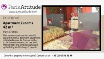 This 20 square meters , Studio, apartment is located on rue de Crussol in the 11th arrondissement, on the 1 st French floor of a 19th century building and it sleeps 2 people. This apartment is equipped with : TV, unlimited high speed internet access, phone, stereo.
