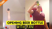 'Australian Man Opens a Beer Bottle with Rotating Fan'