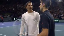 Zlatan Ibrahimovic joue au tennis avec Novak Djokovic sur le court de Paris-Bercy