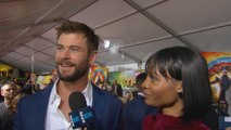 Chris Hemsworth pousse son frère Liam en plaisantant pour ne pas qu'il lui vole la vedette à la première du film Thor : le monde des ténèbres.