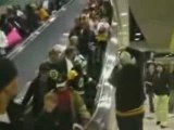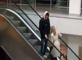 Une blonde monte les escalator à l'envers lol drole !!