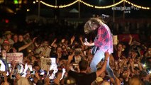 Dave Grohl laisse un fan jouer avec lui pendant un concert des foo fighters
