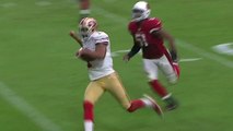 San Francisco 49ers tight end Vernon Davis catches a 1-yard pass from quarterback Colin Kaepernick and gets both feet in bounds to score a touchdown in the waning moments of the first half.