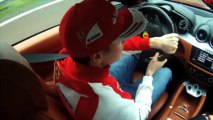 Au volant d’une Ferrari FF, Kimi Raïkkonen s’est également livré sur les tifosis, son équipe de piste au sein de la Scuderia, la FF, qu’il conduisait pour la première fois, ou bien encore sur les difficultés de piloter une voiture qui sera radicalement différente de celles des années passées, pour cause de changement de réglementation.