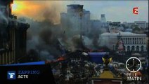 Après l'assaut donnée par la police dans la nuit de mardi à mercredi, l'escalade de violence se poursuit et les manifestants pro-européens ont allumé de nouveaux incendies sur la place de l'Indépendance au centre de Kiev.Durée: 00:48
