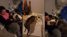 El pit bull 'niñera' que acuna bebés