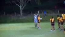 La scène se passe en Australie, entre les universités de Queensland et de Sunnybank. Elle débute ainsi par un plaquage monstrueux et se termine par un joli essai de l'autre côté.