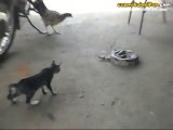 Köpek ve sahibini korkudan havalara uçuran kedi saldırısı kamerada