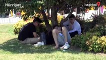 Taksim'de sıcaktan bunalan vatandaşlar şemsiye ile gezdi