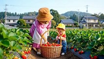 'Protective mama duck angrily scares away cute baby boy playing with her ducklings '