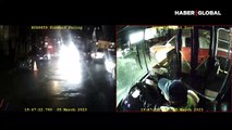 Ne yapacağını bilemediği için yolun ortasında otobüsün önünde durup kalan sürücüsüz otomobil ortalığı karıştırdı
