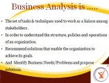 Introduction to Business Analysis - dharani@21cssindia.com Overview and Personal Introduction - +919000444287 Definition of BA - Underlying Competencies & Knowledge Areas - Decision Making - Learing and Exploring - Problem solving - Business /industry / Solution Knowledge - Communication Skills- Oral and Written - Presentation Skills - Facilatetation Skills - Team Work - Business Planning and Monitoring - Elicitation - by 21st Century Software Solutions.
