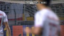 Sao Paulo's Uruguayan full-back Alvaro Pereira collided heavily with a photographer in the first half of his side's Campeonato Brasileiro game against Coritiba.